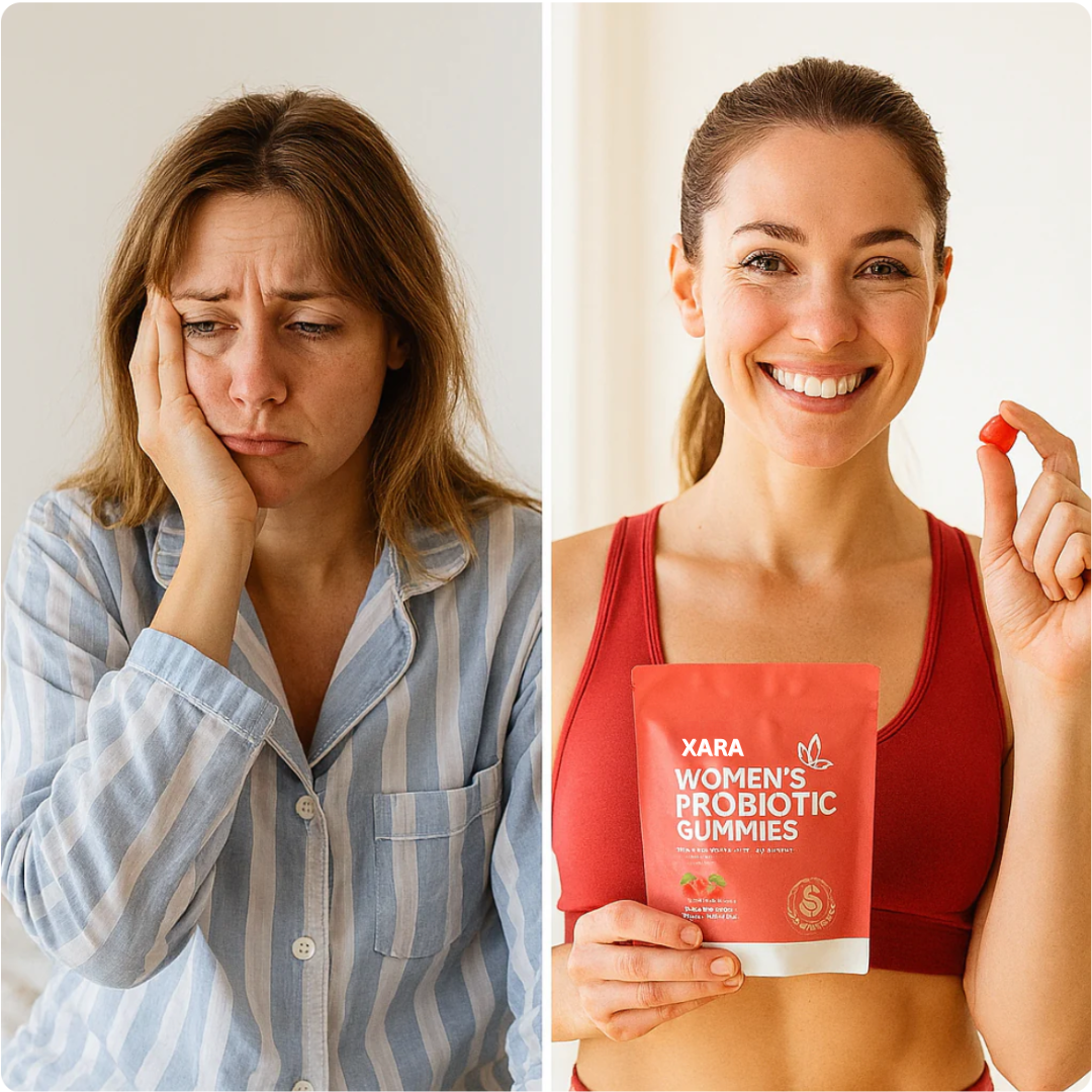 Xara Women's Probiotic Gummies are specifically formulated for women's intimate wellness needs. We combine targeted probiotics with cranberry extract (trusted for urinary tract support) and Vitamin C for immune health. Plus, our delicious gummy format means you'll actually want to take them daily - no more choking down large pills!